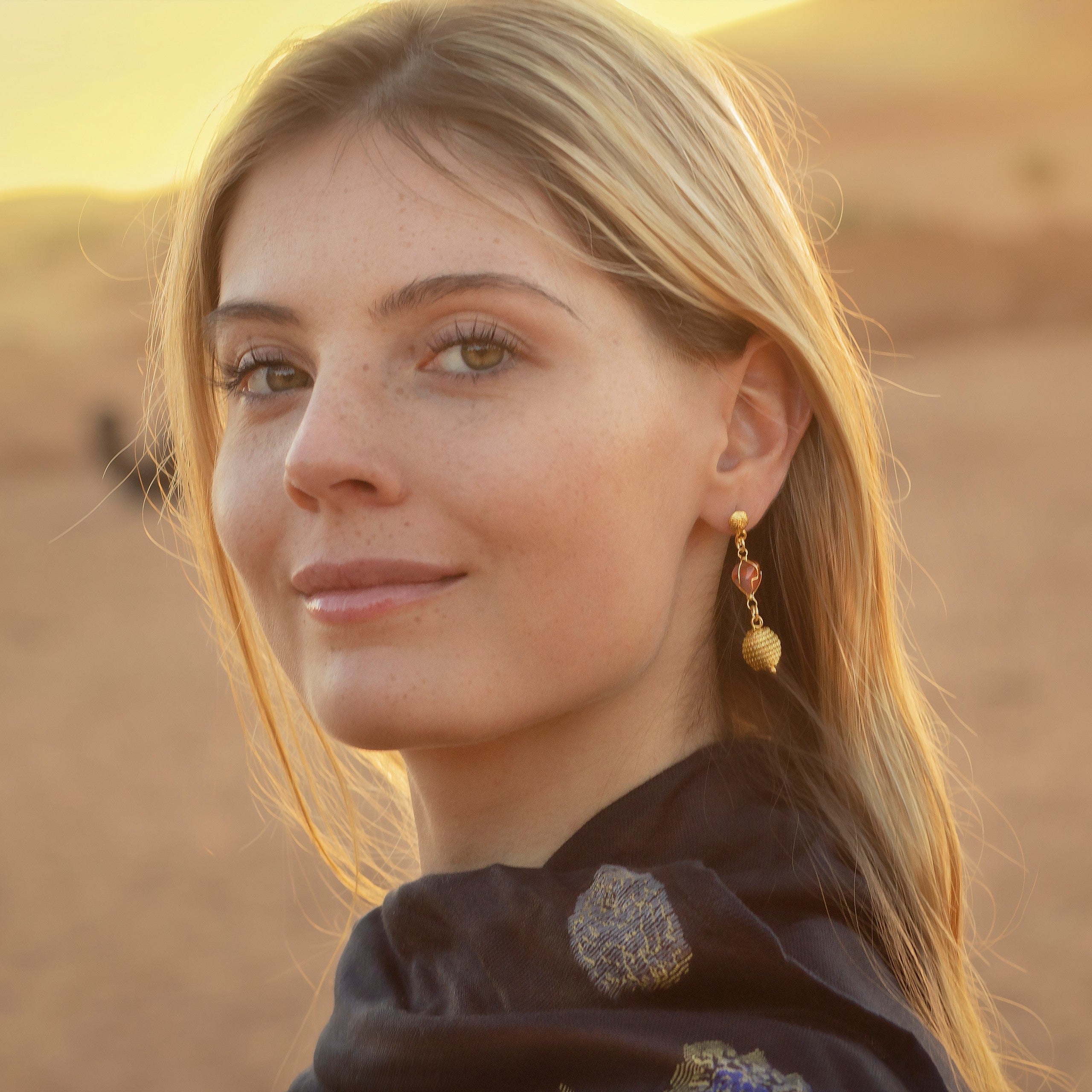 Unsere Schmuckstücke bestehen aus einer hochwertigen, nickelfreien Metallmischung und sind mit echtem 18k Gold vergoldet, wodurch sie besonders hautverträglich sind. Ergänzt werden die Designs durch Edelsteine und bei ausgewählten Modellen durch Palmenseide.