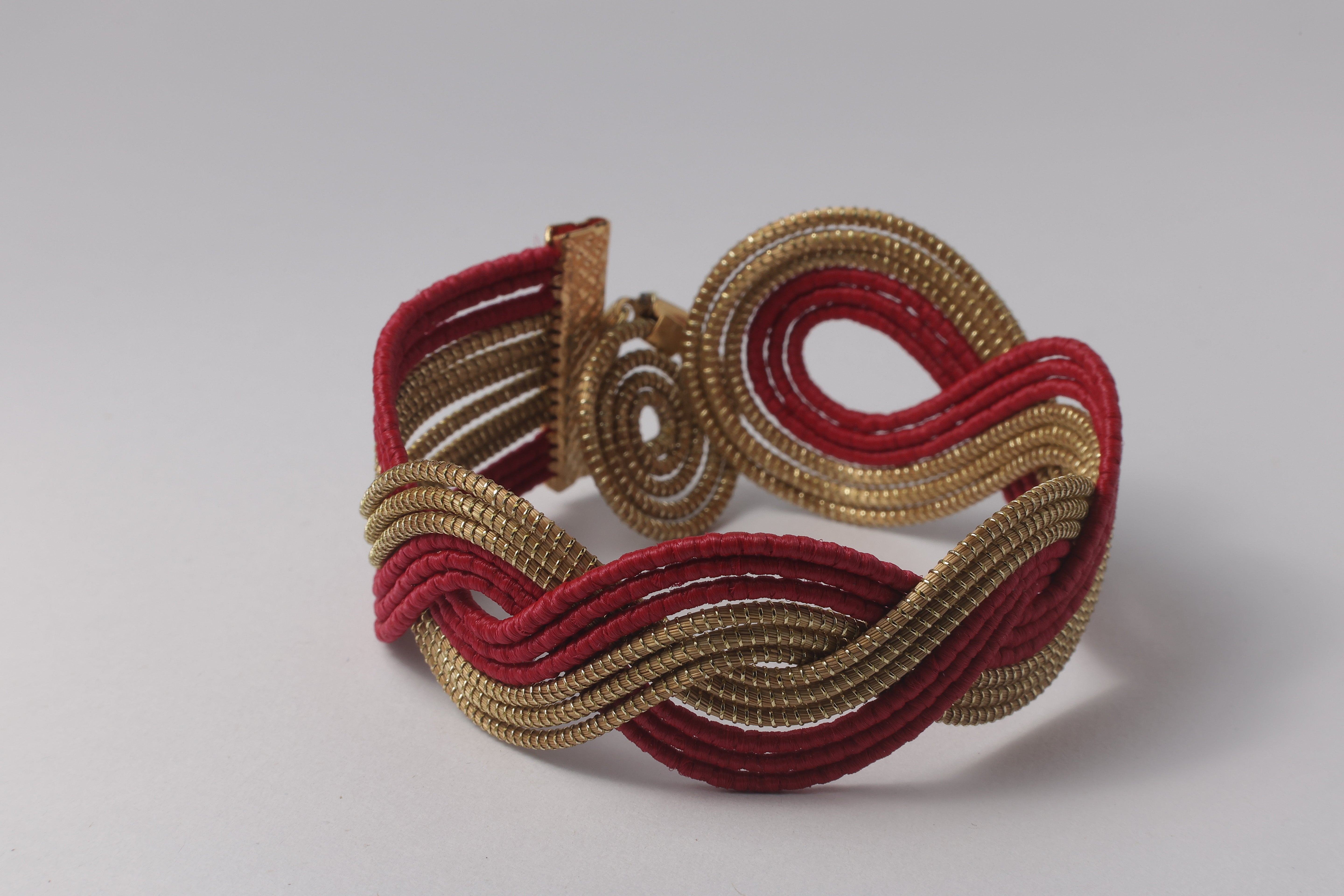 Das handgefertigte Mittelstück aus feinem Goldgras wird von zarten, vergoldeten Ringen eingerahmt. Dank der verstellbaren Länge von 15–18 cm sitzt es perfekt an jedem Handgelenk.